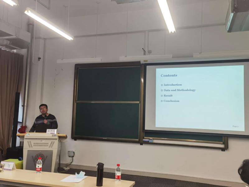 张祚超首先介绍了相关背景,过去的几十年,信息从生产到传播都发生了很大的变化,尤其是媒体以及互联网的出现,使得信息获取的成本降低,信息的数量爆炸式增长。信息量的大幅增加,使得信息处理更加复杂,成本也相应提高,由此引出本次论坛的主题:互联网背景下媒体产生的大量新闻,尤其是大量的媒体转载,能否促进公司层面信息传递?接着张祚超介绍了他的数据来源以及研究方法,他从Wisers数据库获得新闻数据,从CSMAR和Wind数据库获得交易数据,采用NLP方法将新闻区分为原创新闻与新闻转载,采用LDA模型计算转载新闻与原创新闻内容之间的差异,最后以异质波动率作为解释变量,构造动态面板进行回归分析。最后张祚超展示了其实证结果与结论:第一,媒体的转载比例与股价的特质波动率显著的负相关,即高比例的转载不利于公司层面信息的传递;第二,媒体转载与原创新闻之间的差异性与股价的特质波动率存在倒U型的关系,表明媒体进行有差异性的转载能够传递公司层面的信息,但是当这种差异造成信息环境特别复杂的时候,由于投资者有限关注,投资者获取信息的难度增大,不利于公司的特质信息融入到股价中;第三,由于新媒体转载与原创之间的差异性更小,新媒体的转载比例相对于传统媒体与股价的特质波动率表现出更显著的负相关,这一结果与投资者对于转载的陈旧信息会产生过度反应的观点相一致。