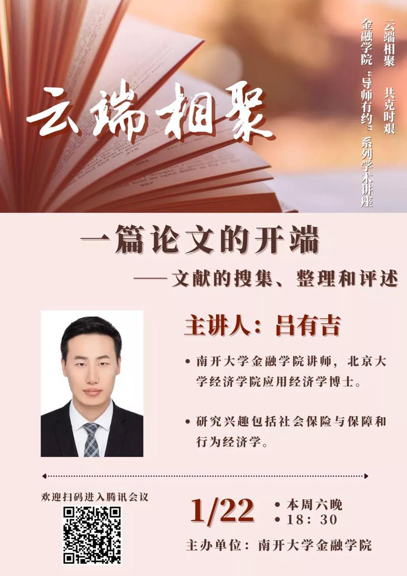 本期活动将由保险精算教师党支部推荐的吕有吉老师为大家带来《一篇论文的开端——文献的搜集、整理和评述》。