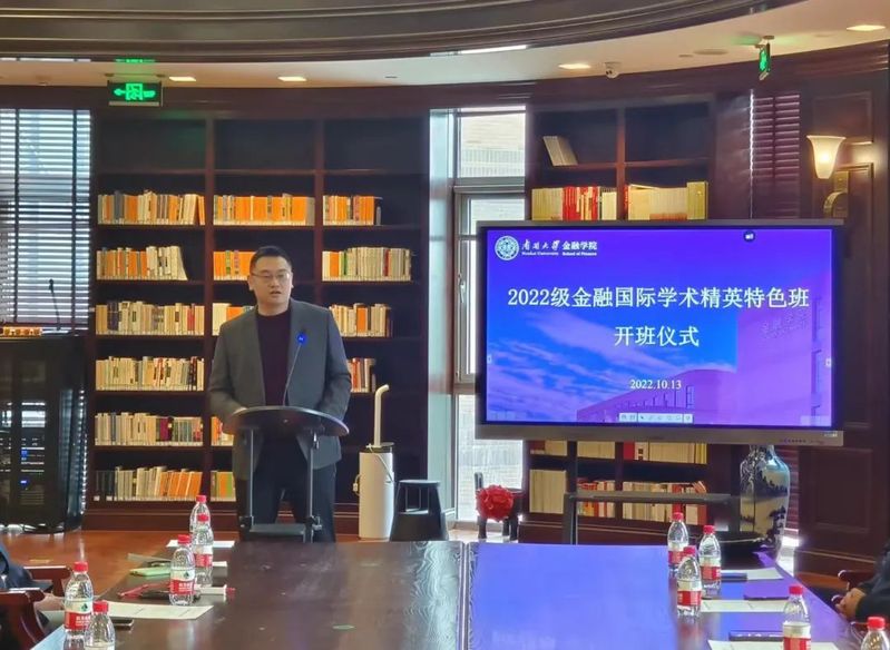 近日,2022级金融国际学术精英特色班开班仪式在宁一弘道书斋成功举办。学院常务副院长范小云,党委副书记、副院长杜雨津,副院长刘澜飚、刘玮,金融学系系主任李泽广,特色班班导师李欣明、覃家琦、张晓琳,辅导员吕沛繁及全体特色班新生参加开班仪式,仪式由刘玮主持。