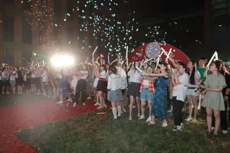 舞台演出结束后,师生们回到银河天井,齐唱《常回家看看》《我要夏天》《七里香》《再见》等经典歌曲,23时23分,“人屏互动”创意舞蹈重磅登场,成为全场焦点。在悠扬的校歌声中,毕业晚会正式落下帷幕,为这个难忘的毕业季画上了圆满的句号。