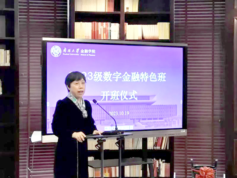 范小云在院长致辞中指出,在中国式现代化发展的进程中,金融与科技是双向赋能、彼此交融的乘法关系,数字金融特色班依托南开大学人工智能、数据统计、金融学等多学科的基础,旨在培养具有多学科背景的高水平金融人才。同时,范小云叮嘱同学们要具备主动学习的能力,广泛阅读,乘理想之风,扬时代之帆,提高自身的学术和实践水平,为数字时代的建设贡献金融力量。