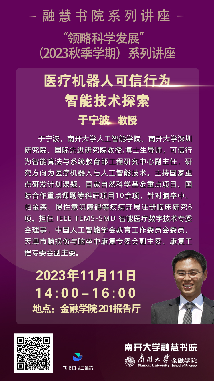 本学期融慧书院“领略学科发展”系列讲座第一期活动安排如下: