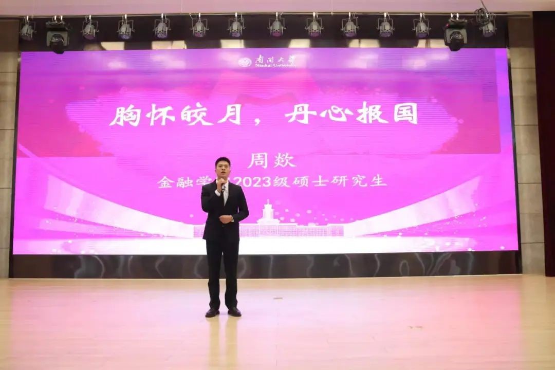 优秀学生代表中国大学生自强之星奖学金、南开大学年度人物获得者周欻,天津市优秀学生、南开大学周恩来奖学金初评前十名王晓萌和胡晋宇,共青团员标兵、十佳志愿者韩啸宇,以及社会实践十佳团队代表肖胤熙等同学现场进行个人及团队风采展示。