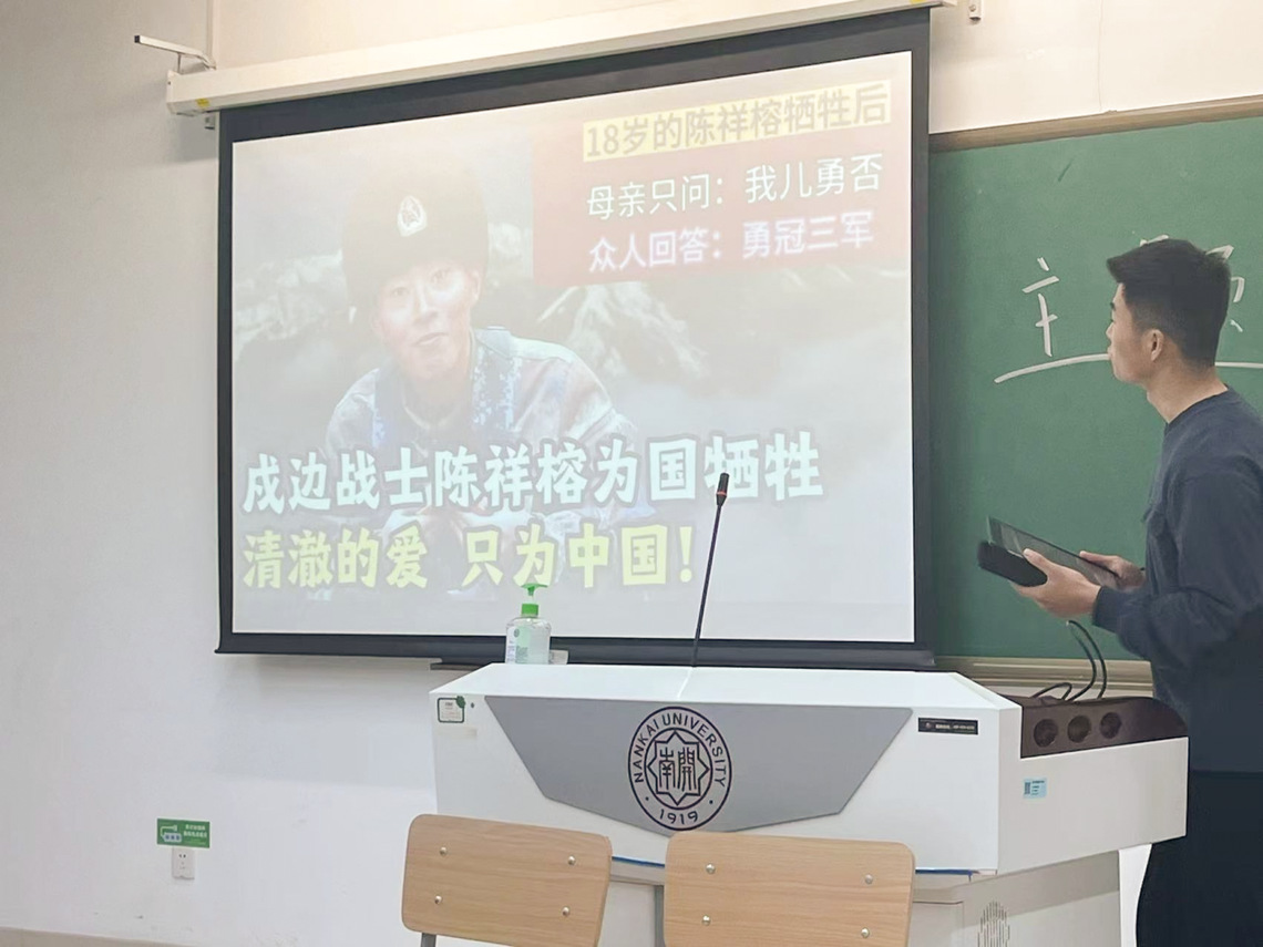 伟大在于漫长,艰巨在于平凡。周欻带来的影像资料中,边防战士们抗击来犯,展现出中国官兵的英勇无畏和爱国热忱。陈祥榕作为那场战役中最年轻的军人,他大无畏的精神诠释着“报国不分年龄。中国是我的,也是你的。”生动鲜活的例子和故事深深地触动了在场的团员同学们。