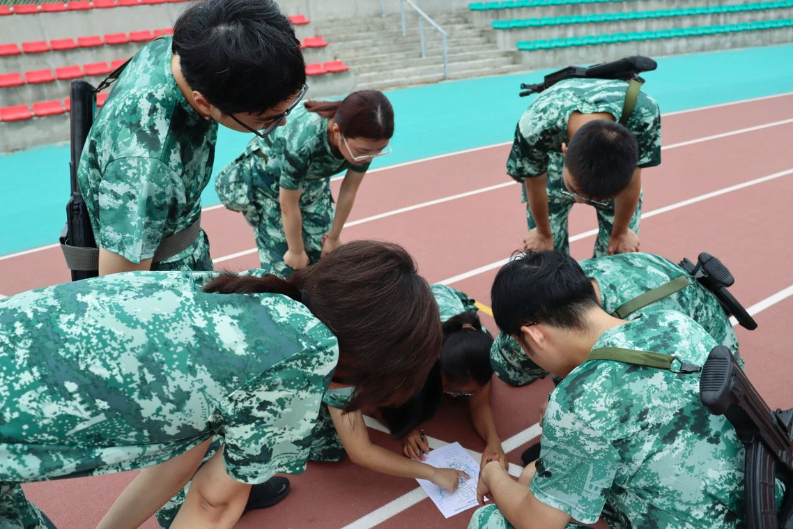 在定向越野比武中,九连参赛学子持枪上阵,飞速奔跑,取得第五名的佳绩。